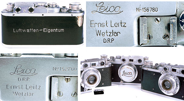 Falsi anni Trenta: notare le scritte imprecise e l’incisione della L di Leica, immediatamente riconoscibili come non originali, inoltre la scritta posteriore Luftwaffe-Eigentum non è completata, come dovrebbe essere, con l’incisione FL (ovvero il numero del contratto) sul carter superiore.